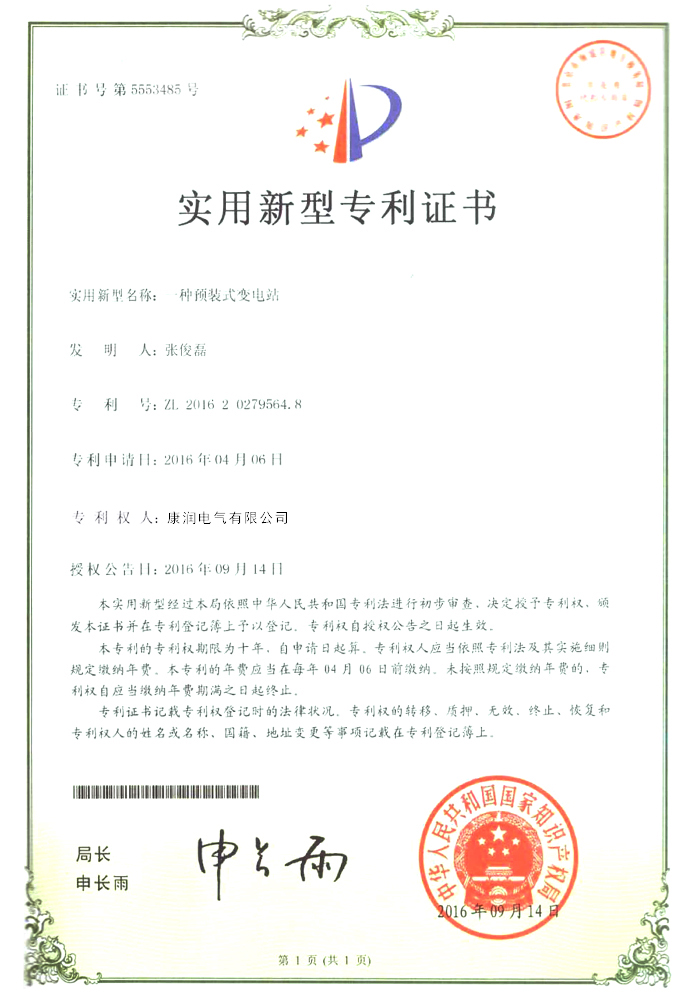 实用新型专利证书